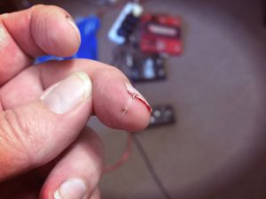 11 Jan 2021 sewing disaster 2 by Laceface | | 0 Laceface the cellist shows her finger that has just been punctured by a sewing needle with the needle still attached!